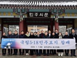 광주 북구의회가 2025년 새해 첫 일정을 국립 5·18민주묘지 참배와 복지시설 봉사활동으로 시작했다고 밝혔다.최무송 의장을 비롯한 20명의 의원들은 7일 오전 국립5‧18민주묘지를 방문하여 추모탑 앞에서