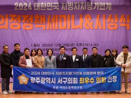 광주 서구의회가 지난 12월 20일 국회에서 전국 기초의회 중 유일하게 여의도 정책연구원 주관 대한민국 지방자치평가연계 의정정책 분야 최우수 의정단체에 선정됐다고 밝혔다.‘2024 대한민국 지방자치평