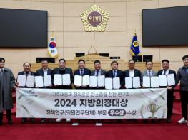 전라남도의회 의원 연구단체인 ‘기후대응과 정의로운 탄소중립 전환 연구회’가 지난달 23일 서울글로벌센터 국제회의장에서 개최된 2024 지방의정대상에서 광역의회 정책연구 부문 우수상을 수상했다.2024