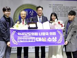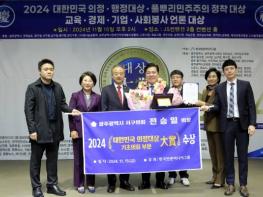[중앙뉴스라인 = 전은희 기자] 2024년 11월 15일, 광주 서구 상무지구 JS컨벤션 2층에서 열린 공법단체 한국언론미디어그룹의 8주년 기념식 및 대한민국 의정대상 시상식에서 전라남도의회 나광국 의원이 '2…