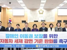 광주 남구의회는 20일, 제317회 임시회 제1차 본회의에서 오영순 의원이 대표 발의한 ‘장애인 이동권 보장을 위한 자동차 세제 감면 기준 완화 촉구’ 건의안을 채택했다.오 의원은 현행'지방세특례제한법'