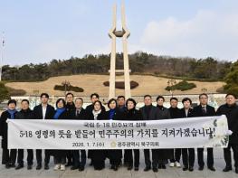 광주 북구의회가 2026년 새해 첫 공식 일정으로 국립 5·18민주묘지 참배와 지역 복지시설 봉사활동을 진행했다고 7일 밝혔다.최무송 의장을 비롯한 의원, 의회사무국 직원들은 이날 오전 국립 5·18민주묘지