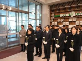 광주광역시 남구의회는 29일, 12․29 여객기참사 1주기를 맞아 남구청사 1층에서 추모식을 진행했다.이날 추모식은 남구의회 의원들과 의회사무국 직원 등 20여명이 참석한 가운데 헌화, 묵념, 추모시 낭독