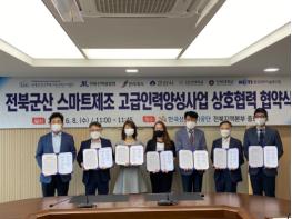 거점산단인 군산국가산단이 스마트그린산단으로 선정됨에 따라 추진 사업의 일환으로 스마트제조 고급인력양성 사업을 전북산학융합원에서 수행하게 되어 6. 8. 산단공 전북본부와 공식 협약을 체결했다. 이
