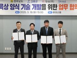 전라남도는 고흥군, 대상(주), 하나수산과 김 육상양식 기술 개발 업무협약을 지난 18일 체결했다고 밝혔다.주요 협약 내용은 ▲김 육상양식 발전을 위한 기술 연구·개발 ▲김 육상양식 전문 교육·인력 양성