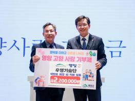 재경영암군향우회장인 박찬모 ㈜우영기술단 총괄이사와 임직원들이, 2/27일 서울 영등포의 한 웨딩홀에서 열린 ‘제38회 재경영암군향우회 정기총회’에서 영암군에 고향사랑기부금 220만원을 기부했다. 박