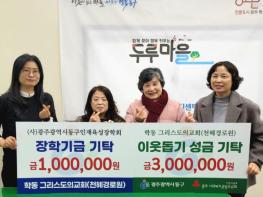 광주 동구 학동은 천혜경로원(학동그리스도의교회)으로부터 어려운 이웃을 위한 후원금 3백만 원과 인재 육성 장학금 1백만 원 총 4백만 원을 기탁받았다고 밝혔다.천혜경로원은 지난 2010년부터 어려운 이
