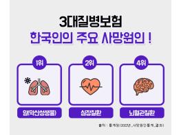 3대질병으로 일컬어지는 암, 뇌혈관질환, 심혈관질환은 한국인의 주요 사망원인에서 상위를 차지하고 있으며, 이에 대한 진단비를 집중적으로 보장해 주는 보험상품을 3대질병진단비 보험이라 할 수 있다.3