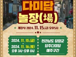 담양군이 오는 15일부터 16일까지 담주 다미담 예술구 일원(담양읍 담주4길 24-46)에서 지역 상인과 주민 화합의 장인 ‘다미담 놀장(場)’을 개최한다. 이번 행사는 담주 예술구를 중심으로 입주작가, 지역