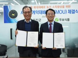 강진군이 서리태의 안정적인 생산과 지속 가능한 농업인 소득 확대를 위해 큰 발걸음을 내딛었다. 강진군은 이를 위해 6일 서울시 양재동에 있는 ㈜두보식품 본사에서 강진원 강진군수, 허태곤 ㈜두보식품