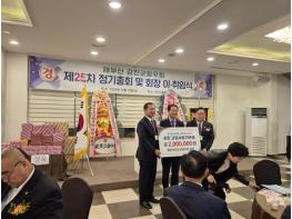 재부산강진군향우회 정기총회 및 회장 이?취임식을 맞아 강진 향우들이 강진사랑의 마음을 담은 고향사랑기부금을 전달하며 감동을 선사했다.강진군은 지난 18일, 부산 이리스웨딩홀에서 열린 ‘제25차 재부
