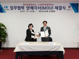 상호간 비즈니스 지원, 정부정책 및 시장동향 정보 공유, 유관기관 네트워크 구축 지원등 업무협약목포상공회의소는 지난 22일 목포오션호텔에서 LA한인상공회의소(회장 정동완)와 상호협력을 통한 기업 비