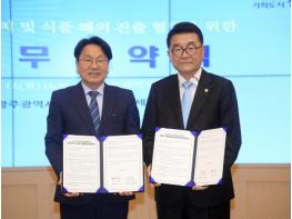 광주시가 세계한식총연합회와 손을 맞잡고 광주김치와 식품의 해외시장 진출을 가속화한다.광주광역시는 12일 시청 비즈니스룸에서 광주 김치 및 식품의 해외진출 협력을 위해 세계한식총연합회와 업무협약