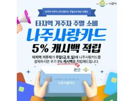 전라남도 나주시가 금요일과 주말 관내 나주사랑카드 가맹점을 이용하는 ‘타지역거주자’를 위한 캐시백 이벤트에 이어 휴가철 15만원 이상 고액 소비자를 대상으로 추가 적립 혜택을 제공한다. 30일 나주