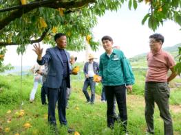 노관규 순천시장이 25일 수확기 탄저병으로 어려움을 겪고 있는 월등면 복숭아 농가 현장을 방문하여 농가의 애로사항을 청취하고 격려했다.월등 복숭아는 맑은 공기, 깨끗한 물, 양질의 토양, 충분한 일조