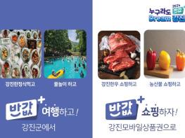 강진군은 여름 휴가철을 맞아 ‘누구라도 반값+ 강진여행’을 하고 반값으로 받은 모바일 상품권을 통해 우수한 강진 농수특산물을 반값으로 만나볼 수 있게 됐다고 24일 밝혔다. 군은 이번 기회를 통해 신