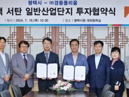 평택시가 평택 서탄 일반산업단지 내 1600억 원 규모의 기업투자 유치에 성공했다. 평택시는 18일 평택시청 대외협력실에서 ㈜경동폴리움과 투자협약을 체결했다고 밝혔다. 이번 협약은 ㈜경동폴리움이 서탄