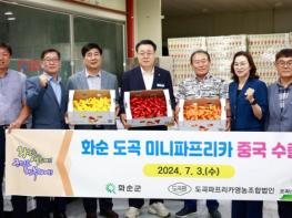 화순군은 7월 3일 도곡농협 제1 APC에서 도곡파프리카영농조합법인의 미니파프리카 중국 수출 선적식을 거행했다고 밝혔다.이날 선적식에는 구복규 화순군수, 문형윤 도곡파프리카영농조합법인 대표, 박광재