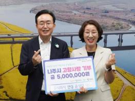 전라남도 나주시는 ㈜연성 윤성연 대표가 지난해에 이어 올해도 나주시에 고향사랑기부금 500만원을 기탁했다고 28일 밝혔다. ㈜연성은 노안면 농공단지에 소재한 여성기업으로 금속 창호, 제진기, 수문권양