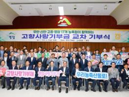 영암군 농·축협이 지역연대 고향사랑기부의 주인공으로 나섰다. 영암군이 6/27일 영암군민회관에서 영암·고흥·무안·신안군의 17개 농·축협 임직원 100여 명이 참석한 가운데 ‘고향사랑기부금 교차기부식’
