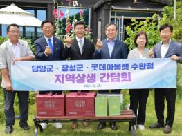 담양군은 지난 25일 대기업과 협업으로 도농 교류 활성화를 통한 발전 방향을 모색하고자 장성군과 함께 롯데아울렛 수완점과 지역상생 간담회를 열었다. 이날 간담회는 민주당 이개호 국회의원실의 주선으