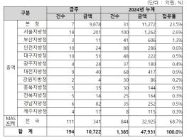 조달청은 ’24. 2. 19. ~ '24. 2. 23. 기간 중 한국항공우주연구원 수요 '차세대발사체개발사업 발사체 총괄 주관 제작' 등 총 194건, 약 10,722억 원 상당의 물품구매 입찰을 집행할 예정이다. 위 기간 동