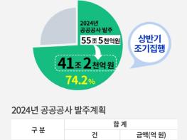 조달청은 중앙행정기관, 지방자치단체, 공공기관의 2024년 신규 공공공사 발주계획 분석 결과, 올해 상반기 41조 1,837억 원 규모(전체 발주계획의 74.2%)의 신규 공공공사가 조기 발주돼 국가경제 활성화
