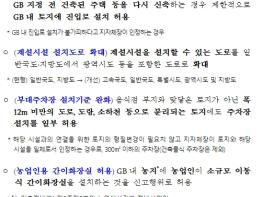 국토교통부는 2월 6일 국무회의에서 ?개발제한구역의 지정 및 관리에 관한 특별조치법 시행령?(‘개발제한구역법 시행령’) 개정안이 통과되어, 주민의 생활불편이 줄어들 예정이라고 밝혔다. 주요 개정 내