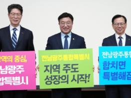 전라남도가 25일 전남광주통합특별시 출범을 앞두고 도농상생과 산업 협력 현장 점검차 전남·광주를 방문한 윤호중 행정안전부 장관에게 ‘행정통합 비용 500억 원’의 추경 반영을 건의했다.전남도에 따르