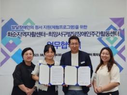 화순군에서 위탁 지원하는 화순지역자활센터에서는 지난 30일 발달장애인의 정서 지원 프로그램 개발·진행을 위해 광주광역시 서구에 소재한 희망 서구 발달장애인 주간 활동센터와 업무협약(MOU)을 진행했