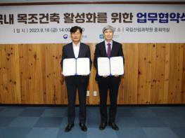 산림청 국립산림과학원(원장 배재수)은 8월 18일 자이가이스트(대표 남경호)와 모듈러 공법 등 국내 목조건축 시공 시스템 다변화와 품질 향상을 통한 목조건축 활성화를 위해 업무협약(MOU)을 체결했다.