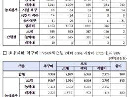 농림축산식품부는 최근 전국적으로 발생한 우박, 호우피해에 대하여 재해복구비 263억원을 신속 지급한다고 밝혔다. 정부는 우박(6.8.~6.15.)으로 인해 피해를 입은 경북, 충북, 강원 등 7개도 농가를 대상