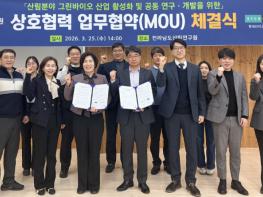 전라남도산림연구원이 25일 ㈜현대바이오랜드와 산림자원을 활용한 그린바이오 산업 활성화를 위해 업무협약을 하고, 고부가가치 제품 개발과 원물의 안정적 생산체계 구축을 위한 상호 협력에 나섰다.이번
