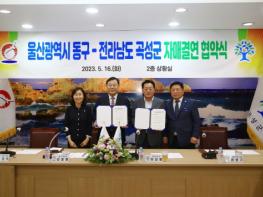 곡성군은 지난 16일 울산광역시 동구와 상생 협력을 통한 지역 경쟁력 강화를 위해 자매결연 협약식을 추진했다.자매결연 협약식은 울산 동구청 상황실에서 이상철 곡성군수, 김종훈 동구청장, 곡성군의회