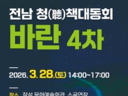 전라남도는 오는 28일 오후 2시부터 장성 문화예술회관에서 전남 청책대동회 바란을 개최, 전남광주통합특별시 출범과 함께 정부가 약속한 20조 원의 재정 활용 방안을 시도민과 함께 논의할 예정이다.‘바