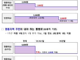 국토교통부는 2월 28일 경제여건 변화 및 공공기관 재무여건 등을 고려하여 ?영종·인천대교 통행료 인하 추진방안?을 마련하였다고 밝혔다. 국토교통부는 ?민자고속도로 통행료 관리 로드맵('18.8)?에 따라