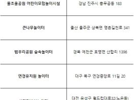 안전하고 모험적이며, 어린이들이 충분히 쉴 수 있는 올해의 우수 어린이놀이시설로 충남 서천군 국립생태원 생태놀이터 등 7개소가 선정됐다. 행정안전부는 어린이 안전에 대한 관심 제고와 안전한 어린이