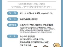 무주군은 구인·구직자가 참여하는 ‘2022년 구인구직 만남의 날’을 8일 개최한다.이날 무주예체문화관 대공연장에서 진행되는 ‘2022년 구인·구직 만남의 날’은 무주군에 거주하는 구직자를 비롯해 채용예