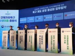 중소벤처기업부는 국정과제 ‘규제샌드박스 플러스’, 규제자유특구 협력네트워크(상생이음)를 9월 27일 출범했다고 밝혔다.‘특구 상생이음’을 통해 기존 각 특구가 개별적으로 실증 사업을 추진하는 구조