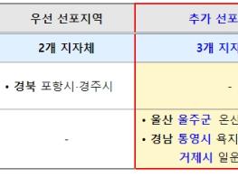 윤석열 대통령은 9.28일 제11호 태풍 ‘힌남노’ 피해지역에 대한 중앙합동조사 결과를 토대로 피해액이 읍?면?동 단위 선포요건을 충족한 울산 울주군 및 경남 통영?거제시 일부 읍?면 6개 지역을 특별재난