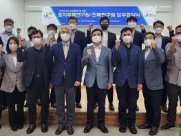 전북연구원(원장 권혁남)과 LH토지주택연구원(원장 김홍배)이 지역특성을 고려한 지역주도의 균형발전을 위해 6일 오후 4시 전북연구원에서 업무협약을 체결했다. 이번 협약을 통해 두 기관은 △공동 세미나