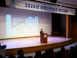 장수군은 지난18일 한누리전당 소공연장에서 군 소속 현업 근로자 300여 명을 대상으로 2026년 1분기 산업안전·보건 근로자 정기교육을 실시했다고 밝혔다. 이번 교육은 산업안전보건법에 따른 법정 의무교