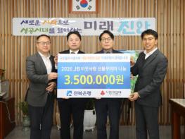 전북은행은 24일 진안군청 부군수실에서 관내 취약계층 지원을 위한 물품 전달식을 가졌다. 이 날 전달식은 전북은행의 사회공헌 활동의 일환으로 추진됐으며 전북은행 최종구 부행장과 전북은행 강태호 진