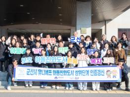 군산시가 23일 시청 1층 현관에서 유니세프가 인정하는 아동친화도시 최고단계인 ‘상위단계 인증갱신’을 기념하는 현판 제막식을 개최했다.이번 제막식은 군산시가 유니세프 아동친화도시 상위단계 재인증
