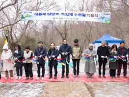 영암군이 21일 군서면 도갑제에서 친환경 탐방로 ‘대동제 탐방로’와 ‘도갑제 수변길’ 개통식을 열었다.대동제 탐방로는 2023~2025년 전남도비 8억5,000만원 포함 총사업비 17억원으로 영암읍 대동제 일