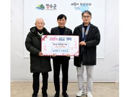 장수군은 (유)번암조경이 군청을 방문해 지역의 어려운 이웃을 돕기 위해 이웃돕기 성금 500만원을 기탁했다고 27일 밝혔다. 장수농공단지에 위치한 (유)번암조경은 15여 명의 직원이 근무하고 있는 지역 기
