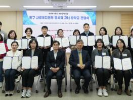 광주 동구는 23일 구청 상황실에서 보성장학재단(이사장 이화영) 후원으로 ‘사회복지영역 종사자 자녀 장학금 전달식’을 개최했다고 밝혔다.이날 전달식에는 장학생들의 학업 일정으로 인해 자녀를 대신해
