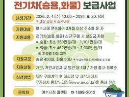 여수시가 교통부문 탄소중립 실현과 대기질 개선을 위해 2026년 상반기 전기자동차 구매보조금 지원사업을 추진한다. 올해 상반기 지원 규모는 전기승용차 400대, 전기화물차 90대로, 지난해보다 1.5배 이상