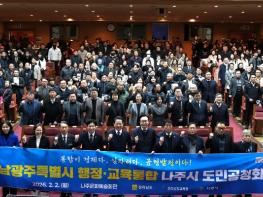 전라남도 나주시가 전남·광주 행정·교육통합 추진에 따른 방향성과 과제를 공유하고 지역 발전을 위한 시민 의견을 폭넓게 수렴하는 공론의 장을 마련했다.나주시는 2일 나주문화예술회관에서 전라남도와 함
