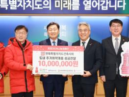전북특별자치도 건축사회가 연말을 맞아 이웃사랑 성금을 기탁하며 지역사회에 따뜻한 온기를 전했다.전북자치도는 24일 도청 회의실에서 전북특별자치도 건축사회가 사회복지공동모금회에 이웃사랑 성금 1,